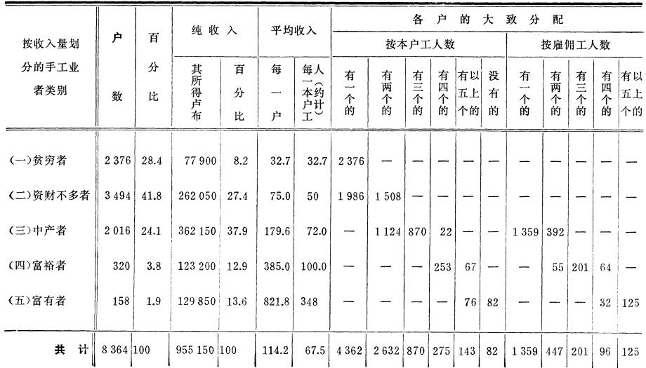 | 自做自卖者 | 为包买主工作者 | 为消费者工作者 | 共计 | ||||||||||||||