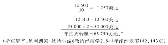 因此,他的全部资本周转一次的平均时间是16个月59…… 假设有另一种情形:总资本50 000美元的1/4是10年流通一次,1/4是1年流通一次,其余1/2是1年流通两次。在这种情况下,每年的支出如下: