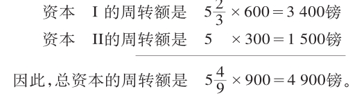 因此,总资本的周转额是 5(5/12)×900=4 875镑。