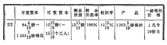 假定:花费资本100(不变资本和可变资本),由这笔资本推动的劳动提供等于预付总资本1/5的剩余劳动(无酬劳动),或者说,提供等于100/5的剩余价值。因此,如果预付资本等于100镑,总产品的价值就应该等于120镑。再假定平均利润等于10%;在这种场合,110镑就是总产品(在上例中是煤)的费用价格。100镑的资本,不管开采的是富矿还是贫矿,在剩余价值率或剩余劳动率既定时转化为120镑的价值;总之,劳动的不同生产率,不论它是劳动的不同自然条件的后果,还是劳动的不同社会条件的后果,还是不同技术条件的后果,都丝毫不会改变商品价值等于物化在商品中的劳动量这一论点。