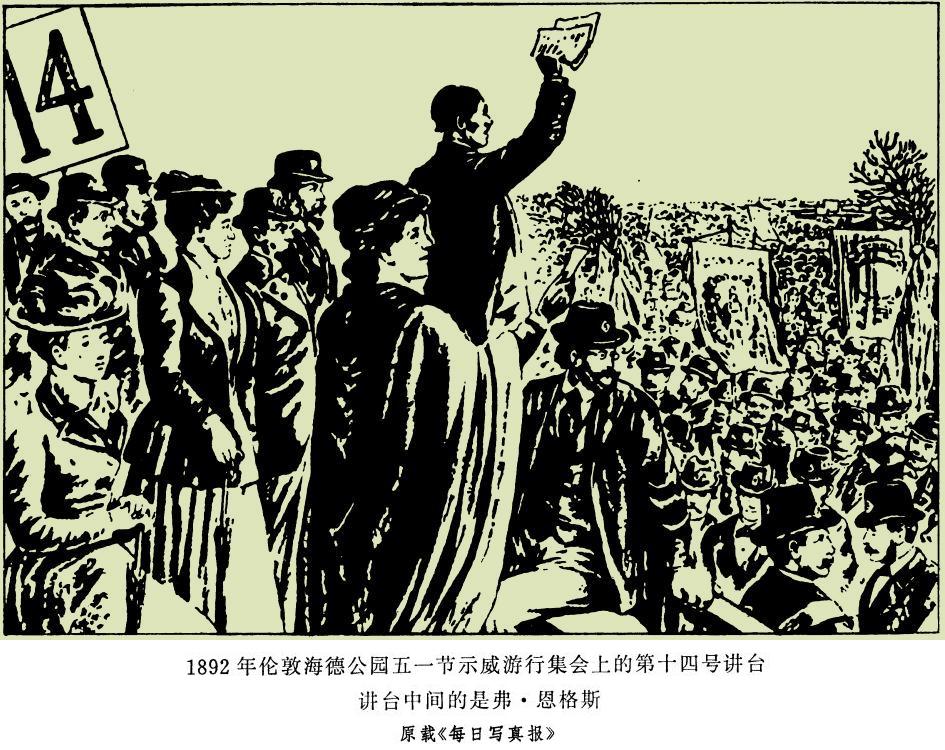 297 1892年5月2日的《每日写真报》上登了一幅画(见本卷第334―335页之间的插图),上面画有1892年伦敦海德公园五一节示威游行集会上的第十四号讲台。——第334页。