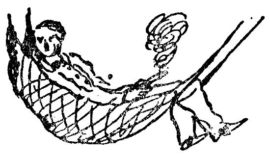 真倒霉!写好这封信后,我回家吃饭,回来时,点上雪茄并打算躺到吊床上去。但吊床这时掉下来了,当我重新钉钉子时,讨厌的德克希姆叫我了,所以我现在已不能离开商行。