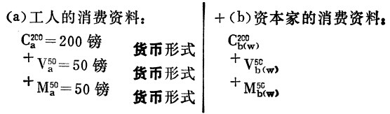 (资本家必须象其他任何不是资本家的商品生产者一样支付自己的生产资料的价值。至于这种商品价值的一部分由无酬劳动,也就是由剩余价值组成这一事实,丝毫不会使这些商品的价值发生变化,因而也不会使资本家必须支付这个价值这件事发生变化。因此可以认为,资本家由于必须把自己的生产资料价值,即他的资本的现实要素的价值,以货币形式投入流通,所以他由此也会提供剩余价值流通所必要的货币。于是,一个资本家为支付不变资本而投入流通的货币额,同时对另一资本家来说(其实在每一单个场合,情况看来也是这样)就表现为他的剩余价值流通所必需的货币。例如,织布业主购买纱、机器、煤等等。这些生产资料的价值中也包含着剩余价值。这些货币由织布业主作为他的不变资本的形式预付出去或投入流通,但是,同时这些货币把生产纱、机器、煤等等的资本家的剩余价值转化为货币。他们可以用这些货币再去购买个人消费的麻布,这些货币又可以实现织布资本家的剩余价值。但是每一单个资本家,就他个人来说,不能把他预付在不变资本上的并且由于出售商品而不断重新流回他手里的那些货币当作收入花费;他任何时候也不能把这些货币当作他的剩余价值的货币形式花费。对于单个资本家来说是正确的事情,对于单个资本家的总数,对于资本家阶级来说,也是正确的。由此产生出全部的混乱。构成不变资本——不论是单个资本家的还是全社会的——的商品量的价值,就象资本主义生产的所有商品的价值一样,可以分解为资本的不变部分+资本的可变部分+剩余价值。(但是这也适用于单个资本家的每个局部产品,特别是当他的产品由离散的产品,如谷物、机器等的量构成时,这种情况是显而易见的。)对我们来说,这是孤立的社会的局部产品。但是,如果从一部分产品的角度看问题,那么这个[外观]就会消失。以不变资本形式执行职能因而通过买卖在各资本家之间进行分配的商品量,只是社会商品量或年产品的一部分。作为这样一个特殊部分,它只不过是社会不变资本价值的实物形式。这个商品量既不包括工资花费在上面的商品量,也不包括剩余价值花费在上面的(或在其中得到实现的)商品量。它的价值——就是社会产品价值减去工资价值,再减去剩余价值。