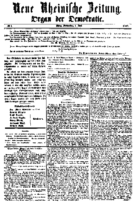 First published: in the Neue Rheinische Zeitung No. 1, June 1, 1848.