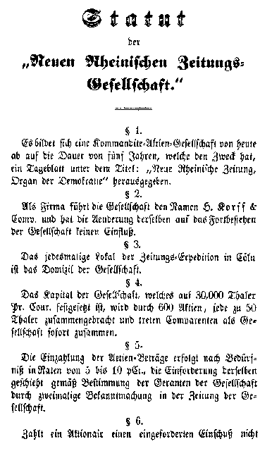 Originally the date of publication of the Neue Rheinische Zeitung was to be the first of July, and arrangements with correspondents etc. were made with that date in view.